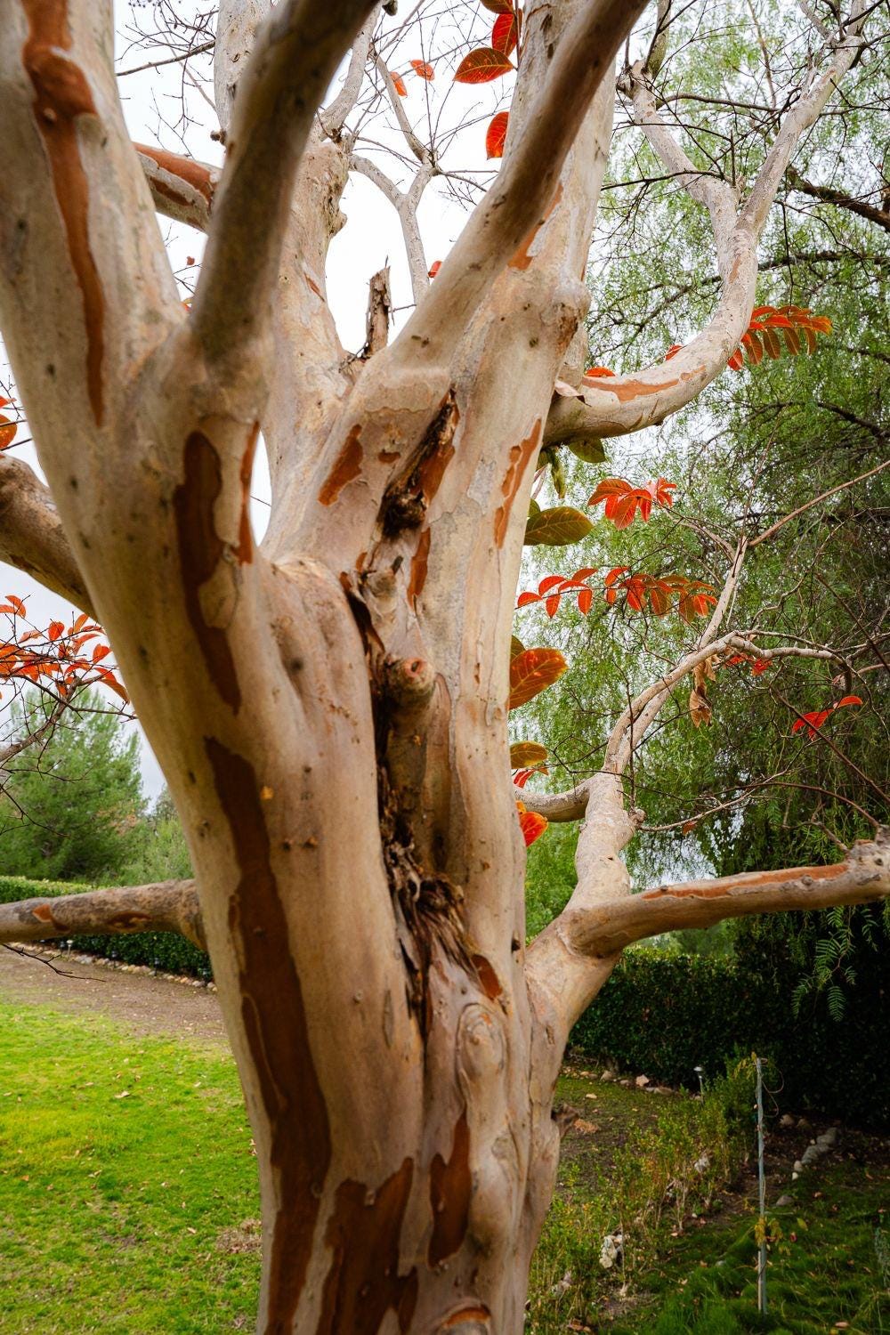 樹皮剝落的現象,發生在一些不同的樹種身上,自然生長或環境因素造成。靠近海岸或沙漠地區的某些樹種,面臨乾旱熱、強日曬、漂浮在空中的細沙和海鹽,為了生存或再生,樹皮自動脫落。家園中的懸鈴木、紫薇、尤加利樹都有這個情況。