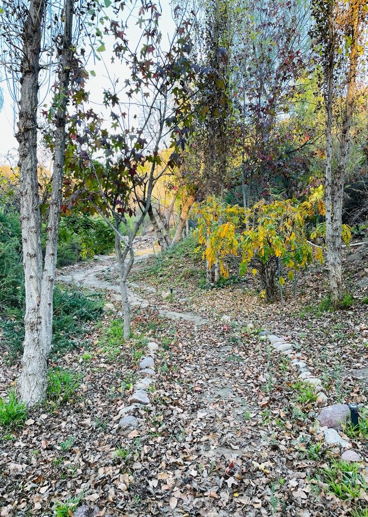 順著山勢地形,池塘位於家園的最低窪處。三面山坡,池塘連結的是蜿蜒小步道,也是我每天徘徊留連的地方。經常來回走走看看,或者坐在石凳上,聆聽大自然的各種聲音,欣賞每一朶小野花,逗逗不時出沒的蜥蜴,聞聞青草和泥土的味道,享受季節變遷的微妙。