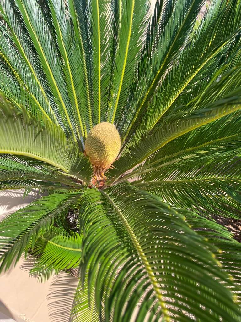 家園中雄花出現的那天,一道淡黃的光澤從樹頂中心冒出,芬芳四溢,也許它在漫長的時間默默積累已久,條件剛好,時機成熟,就安穩自然地現身了。蘇鐵樹堅定地立著,見識過繁華春色,火紅夏日,歷經了飄香秋風,凌霜冬寒,它帶著古老的記憶,從動盪無常的境遇中,體悟不變中有深意。